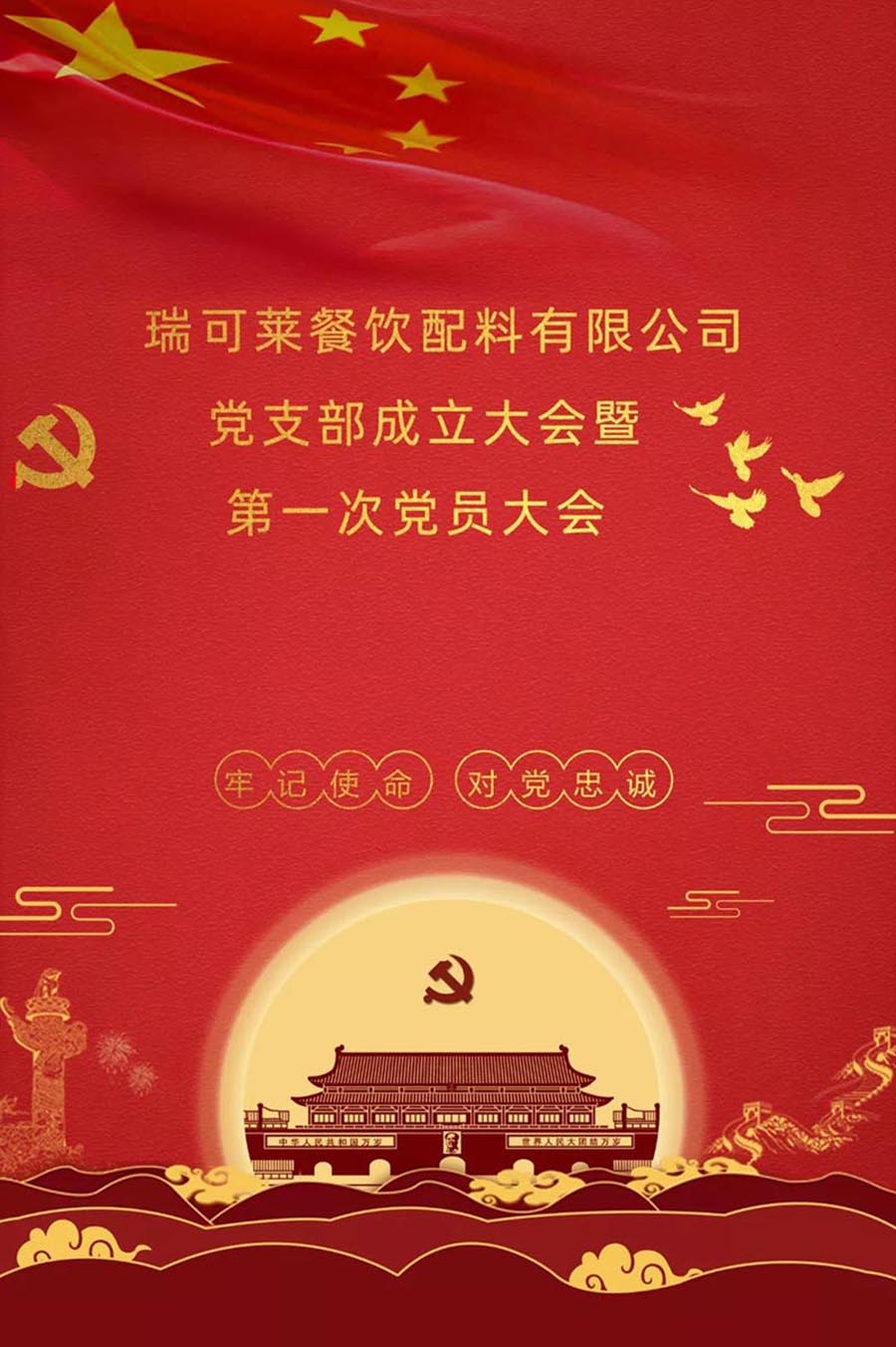 最后,瑞可萊餐飲配料有限公司黨支部成立大會(huì)在莊嚴(yán)的國(guó)歌聲中結(jié)束。參會(huì)黨員紛紛表示愿意在黨支部的領(lǐng)導(dǎo)下,繼承革命優(yōu)良傳統(tǒng),發(fā)揚(yáng)黨的奮斗精神,在各自的崗位上,以身作則,創(chuàng)先爭(zhēng)優(yōu),同時(shí)帶動(dòng)和激發(fā)其他員工的工作熱情,增強(qiáng)企業(yè)團(tuán)隊(duì)凝聚力,為瑞可萊的發(fā)展發(fā)揮積極作用。