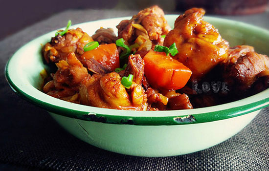 做法:1、雞腿切塊洗凈焯水后瀝干備用。 胡蘿卜切成滾刀塊。